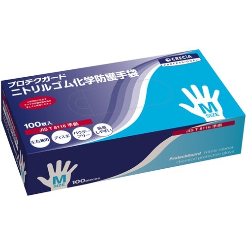 日本製紙クレシア プロテクガード ニトリルゴム化学防護手袋 Mサイズ 1ケース(100枚×10小箱入) 69272 1ケース A09J-1747