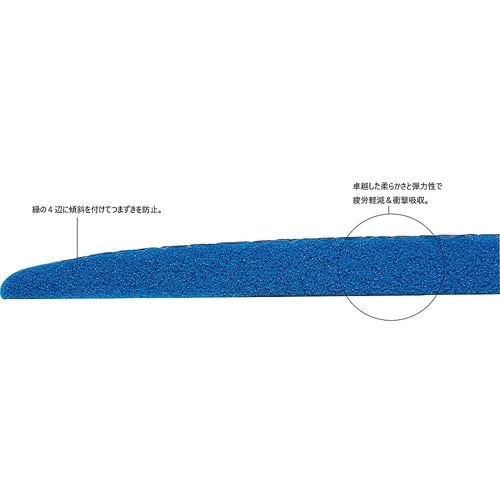 柔らかさと弾力性に優れています。表面の細かな目が足元の滑りを防止します。四隅は傾斜付きで、つまずきにくく安心です。