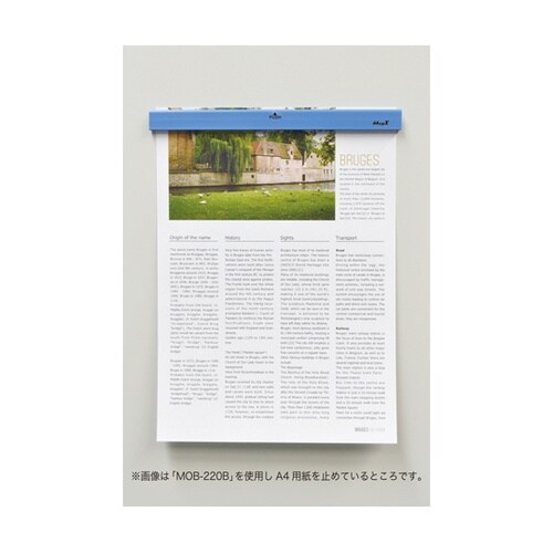 スチール面に掲示物を留めるときに便利なマグネットバー。プラスチック製の定番マグネットバー。プッシュ機構で、紙の留め外しが簡単にできます。