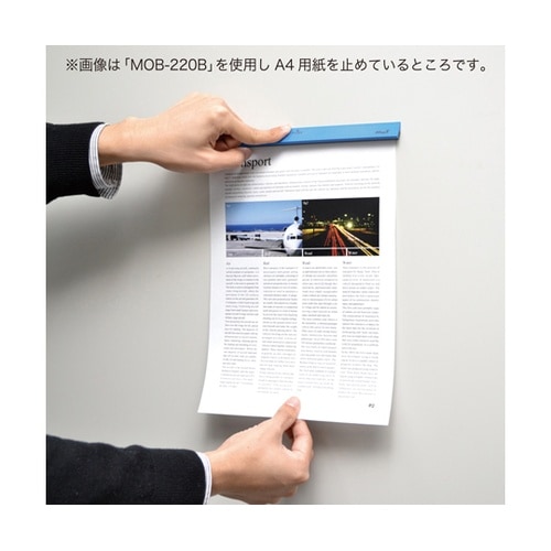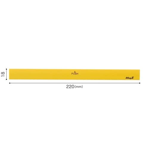 スチール面に掲示物を留めるときに便利なマグネットバー。プラスチック製の定番マグネットバー。プッシュ機構で、紙の留め外しが簡単にできます。