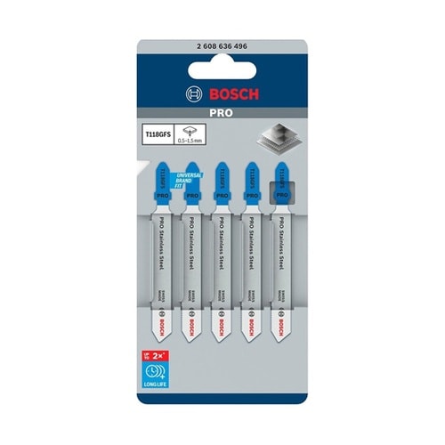 ボッシュ ジグソーブレード(5本) 切断材料(mm)0.5ー1.5(ステンレス)/0.5ー1.5(軟鋼板) T−118GFS 1個 A09J-2050