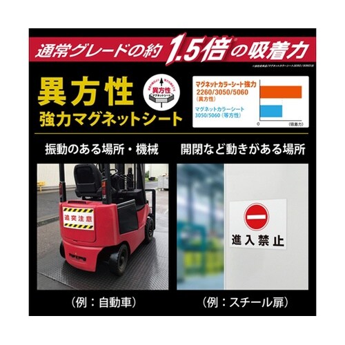 メーカー従来品の約1.5倍の吸着力。異方性強力マグネットシート。表面白PVC。つや無し加工です。 |