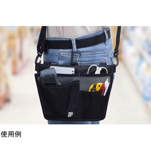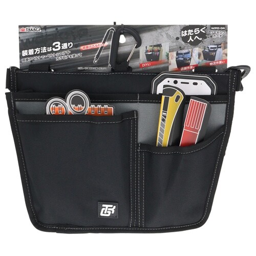 店舗・物流・DIY・ガーデニング等の作業時の収納に装着方法は3通り!肩掛けベルトで。ベルトにつけて。カラビナを使って。
