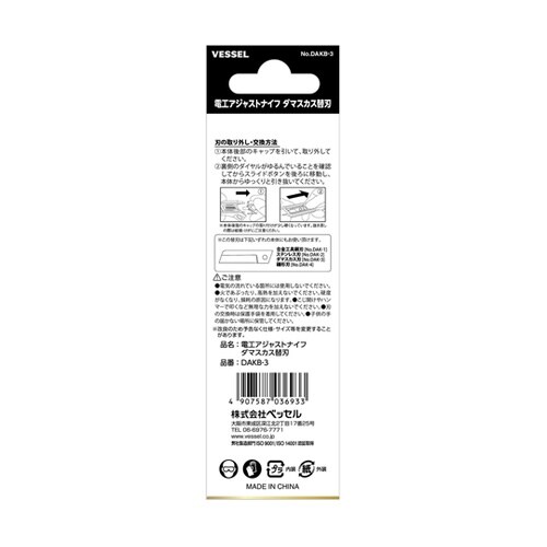 電工アジャストナイフ(No.DAKシリーズ1)にお使いいただけます。一般のカッター刃などと互換はありません。