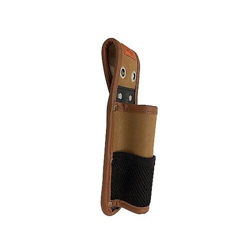 痛みやすいベルト通しの芯と表面に補強材を使用しています。突起物の接触にも耐久性があるハードブレード仕様です。ビット等を収納できるネット型の小物入れ付きです。 |