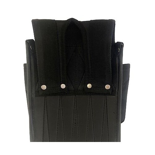 縁巻きでズボンを傷めにくいシームレス加工が施されています。D管リング付きで安全コードが装着できます。前面には3つの貫通タイプ工具差し付きです。底面に水抜き穴付きです。
