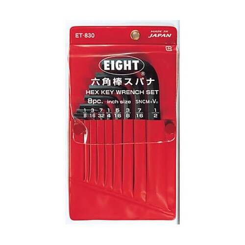 長年の実績と信頼できる品質。スタンダードタイプの六角棒スパナです。パーカー黒染仕上げ。インチサイズの8本組セットです。 |