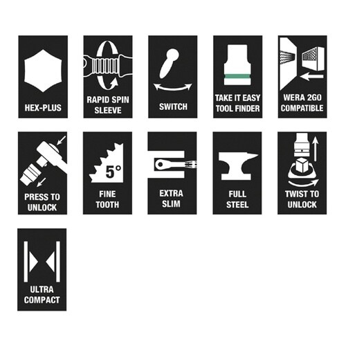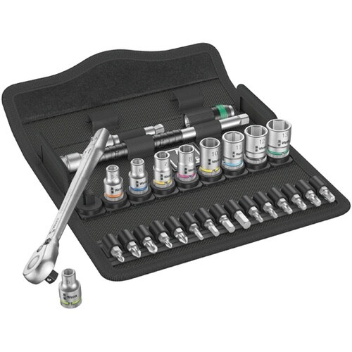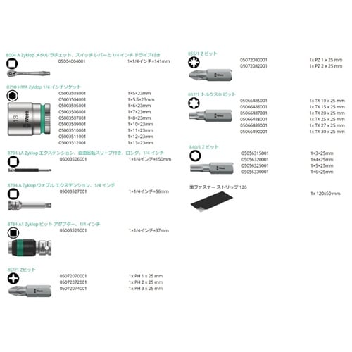 8100 SA 8 サイクロップメタルラチェット1/4” レバー式セット。[ラチェット]非常に狭いスペースでも作業できるスリムなデザイン。戻り角わずか5°。 |