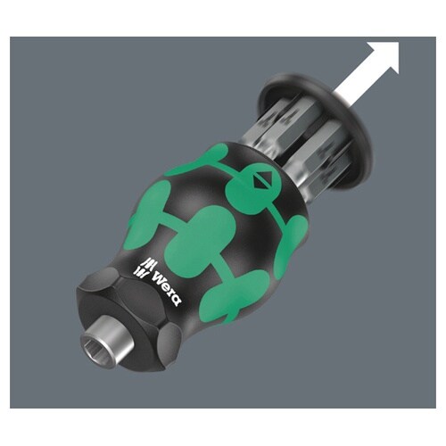 クラフトフォームコンパクト スタビー ビット収納 5。狭い設置スペースでの作業に適した短くコンパクトなスタビー形状の一体型マガジンに6ビットを装備。 |