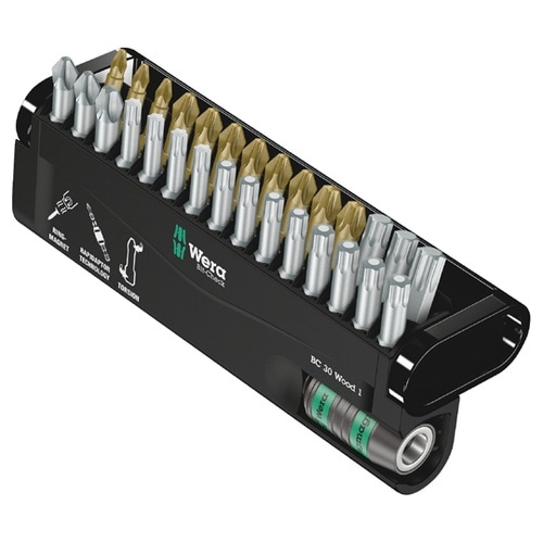ビットチェック 30 木工向けビットセット1。ビットチェックにより、必要なツールを視認できます。使わないビットは専用のケースにセットしておけば、安全に保管できます。 |