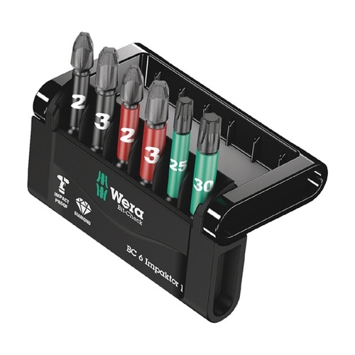 ビットチェック 6 インパクター 1 ビットセット。直立保管可能なコンパクトな専用ケースにツールがセットされたビットチェック。 |
