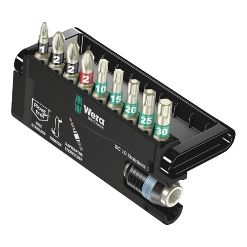 ビットチェック 10 ステンレスビットセット1。ケースは直てた状態で保管できます。ヴェラステンレスツールはステンレス鋼で製造されており、外部からのもらい錆を防ぎます。 |