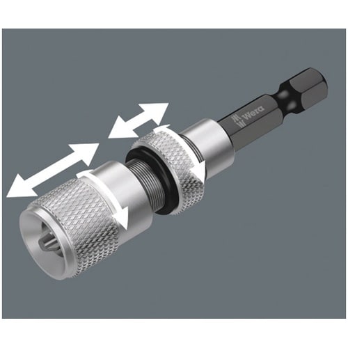 896/4/1 SB ビットホルダー。アルミニウム製の高品質スペーサーで作業深度を調整でき、リセス(ネジの窪み)に合わせることができます。強力な磁石とスペーサ。 |
