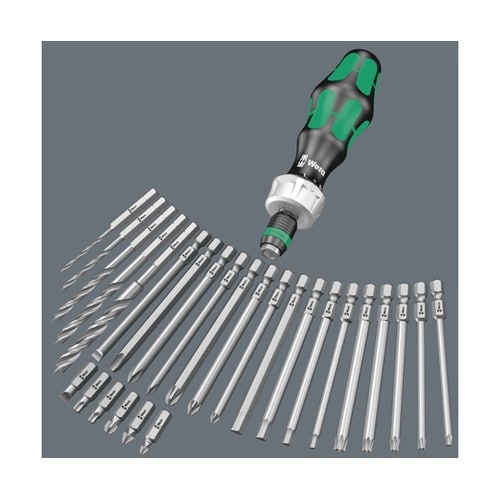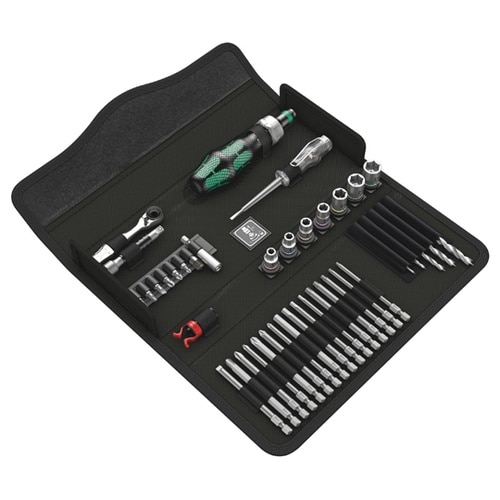 クラフトフォーム コンパクト H 1。木材を扱う用途で最も重要なドライバー ツール41個を備えたコンパクトなツールセット。ビットやソケットの巻き取りに適した堅牢なZyklopミニラチェット。 |
