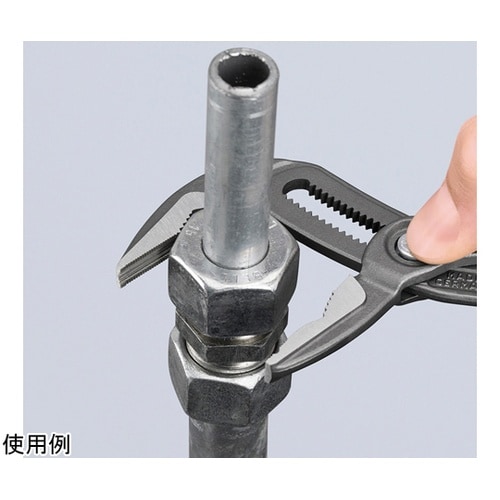ヘッド部やジョイント部がスリムにデザインされており、挟い場所での作業に適しています。ヘッド先端は特にスリムな形状です。プッシュボタンを押すだけで片手で簡単にサイズを調節できます。 |