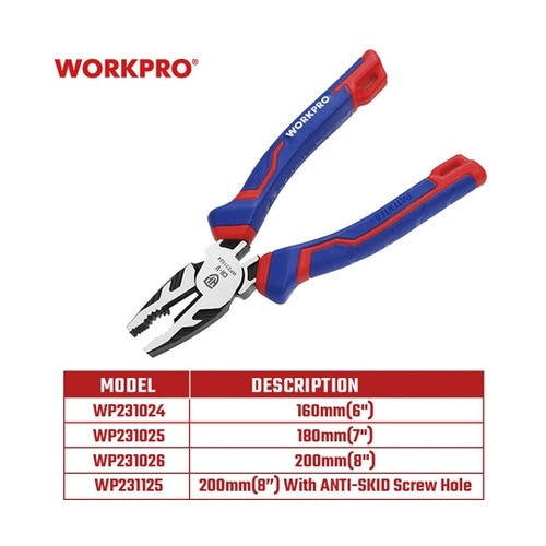 WORKPRO 切削作業用コンビネーションプライヤー 全長160mm WP231024 1個 A09J-3146