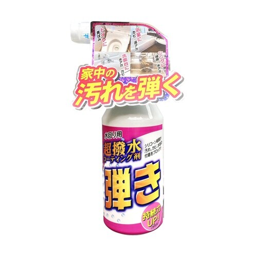超撥水剤 弾き!フッ素樹脂とシリコーンの力を利用した水周り用のコーティング剤です。 |