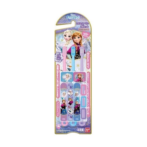 『アナと雪の女王』のこどもハブラシが登場!ハブラシは3色で3本セット。歯グキを傷めにくい丸い毛先と、奥歯まで磨きやすい先の丸いコンパクトヘッドでお子様でも使いやすいハブラシです。 |