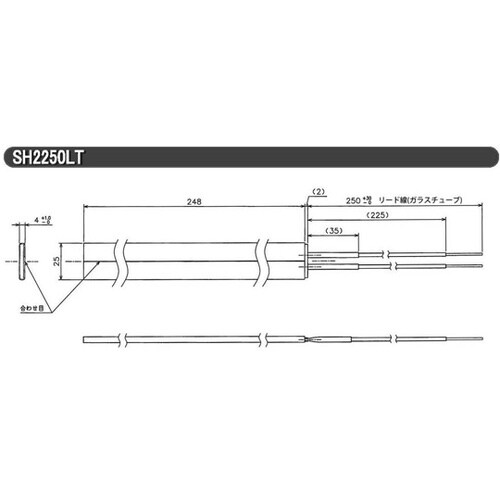 全長:248mm | 幅:25mm | 厚さ:4mm | 電圧(V):200 | 容量(W):250 | ワット密度(W・cm2):4.0 | その他…