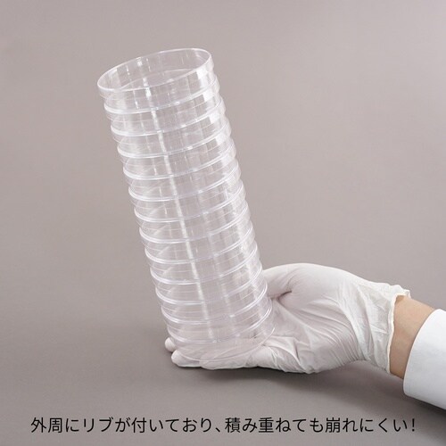 シャーレ内での混合や高さが出る真菌等の培養に使用できます。平滑性があり、培地を入れた際の色ムラができにくいです。外周にリブが付いており、積み重ねても崩れにくい形状です。