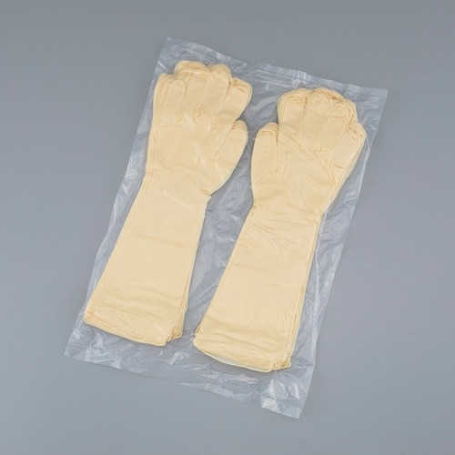 肘くらいまでカバーできるスーパーロングタイプで、血液や体液から防護します。ラテックス製で柔らかく、操作性に優れています。滅菌済タイプと未滅菌タイプの2種類あります。 |