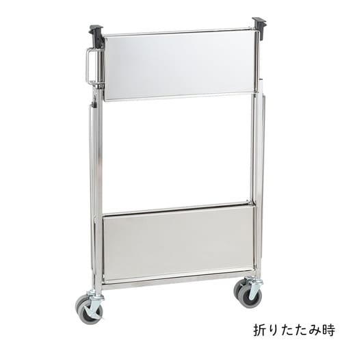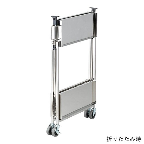 折りたたんでも安定して自立します。左右のレバーを押して持ち上げることで折りたためます。片側ハンドル付きで移動に便利です。 |