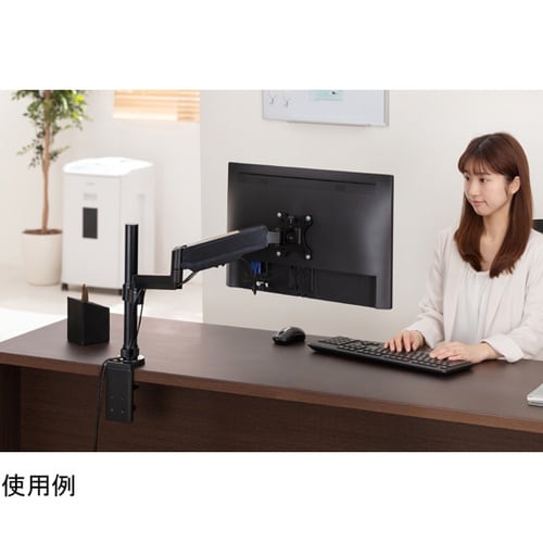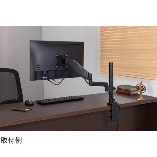 デスクに取り付けて角度や位置を調整できる、ディスプレイアームです。VESA規格に対応しているので、様々なサイズのディスプレイに取り付けできます。 |