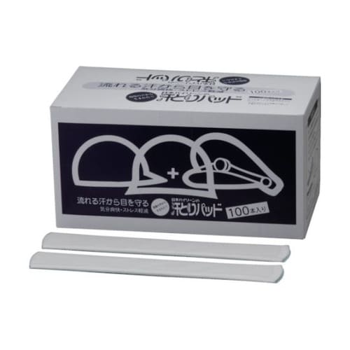 ヘルメットや帽子の額が当たる部分に貼り、汗を速やかに吸収します。使い捨てタイプでいつも清潔なパッドを使用できます。弱粘着タイプのヘルメット用と、強粘着タイプの帽子用の2種類から選べます。 |