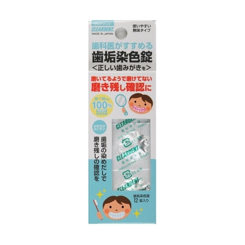 そのままでは見えにくい歯垢を染出して除去しやすくする錠剤タイプです。有効成分である食用色素は食用添加物が主であるため、飲み込んでも無害です。錠剤(1錠)を噛み、舌で歯に伸ばして赤く染めてください。 |