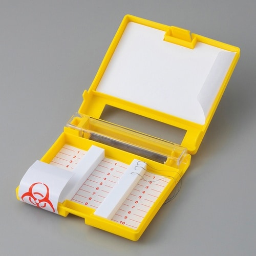 替刃メスのブレードリムーバーが付いています。スポンジ部は縫合針のカウント、マグネット部では縫合針・メス替刃のカウントが可能です。カウンティング用に番号が印字されています。 |