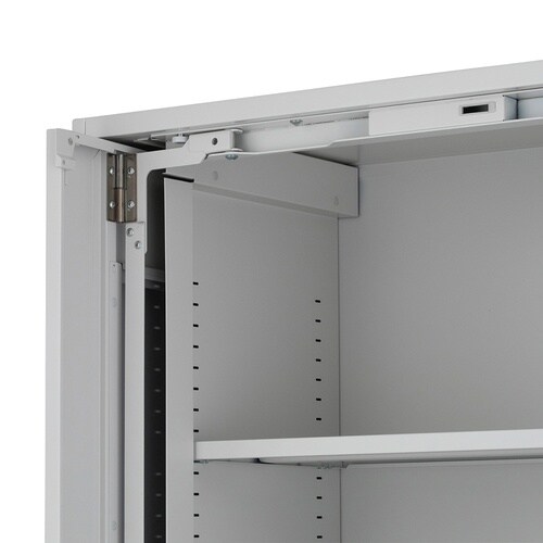 豊富な収納量のトールタイプ扉が収納式のため、開けっ放しにしていても邪魔になりません。収納時の扉の出っ張りは約92mmなので、ストレスのないスムーズな開閉が可能です。 |