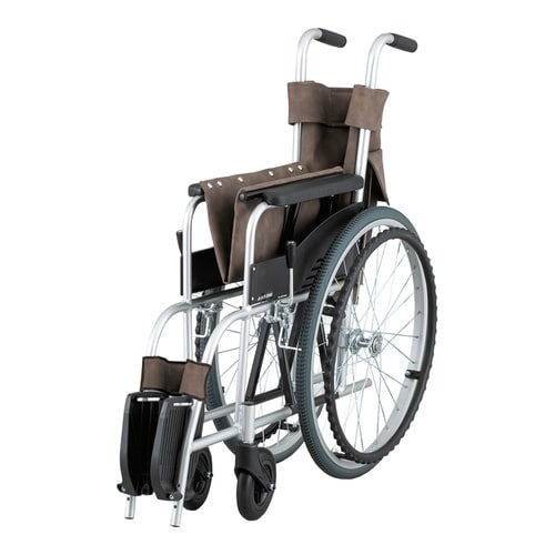 病院、施設等での一時利用に適した車いすです。清拭し易くソフトな質感のPUレザー仕様です。メンテナンスフリーのノーパンクタイヤを採用しています。 |