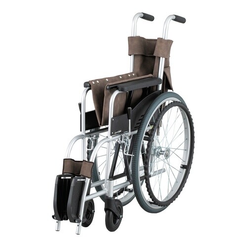 病院、施設等での一時利用に適した車いすです。清拭し易くソフトな質感のPUレザーレザー仕様です。メンテナンスフリーのノーパンクタイヤを採用しています。 |