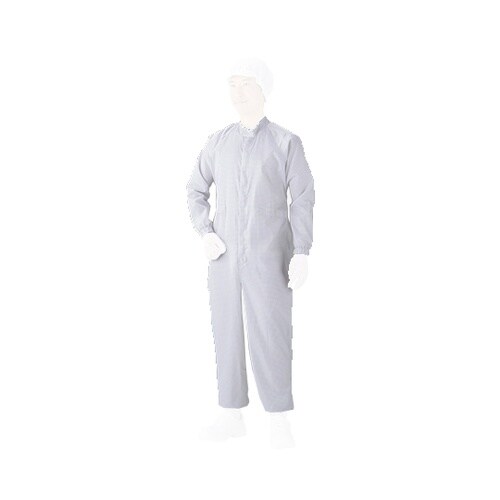クリーンルーム用ウエア100デニール繊維を使用し防塵性が高まりました。グリッド導電糸の採用により、今までにない超低電位を実現しました。