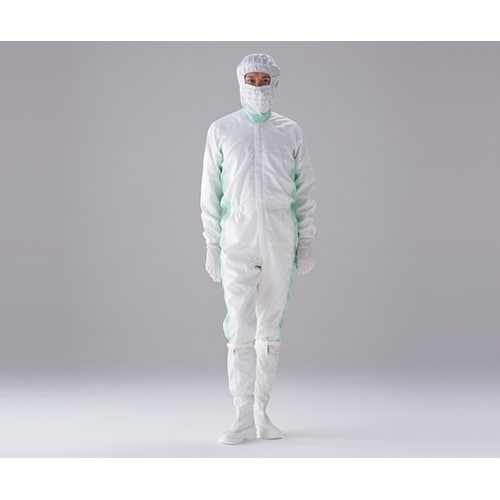 【ネームタグ貼付け導電ハンガー付】クリーンルーム用ツナギ服 白×緑 3L FC131A−13 3L FC131A−13 3L 1セット