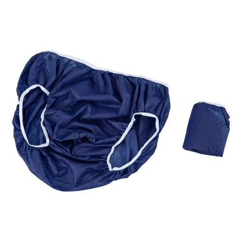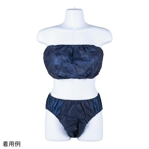 ディスポタイプの不織布ショーツとブラです。個包装のため、衛生的です。ブラは胸部分にゴムバンドが付いているため着用が容易です。透けにくい紺色です。個包装で衛生的です。 |