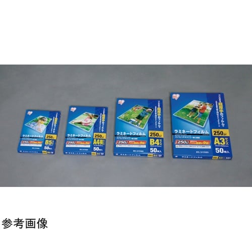厚さ250?のコシのある超厚手のラミネートフィルム50枚です。弾力があり、折れ曲がりにくいため、パンフレットやメニュー等の仕上げに適しています。B5、A4、B4、A3の4サイズの品揃えです。 |