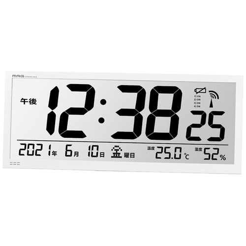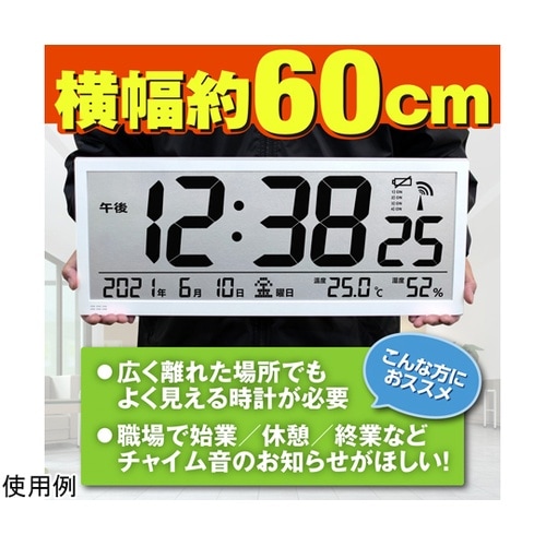 幅約60cmと大型で遠目にもよく見えるデジタル掛け時計です。電波時計だからいつでも時刻は正確に表示されます。 |