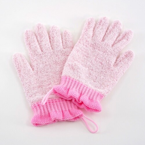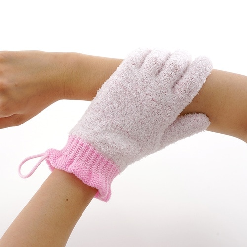 5本指の手袋タイプですので、体のすみずみまでしっかりと洗うことが出来ます。乾燥や保管に便利な紐がついています。 |