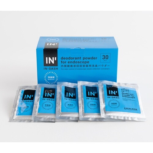 内視鏡のディスポーザル廃液ボトルの消臭剤です。下部内視鏡検査後やイレウスの処置後などの悪臭を防止できます。検査中のボトル交換時の悪臭の発生を止めます。 |