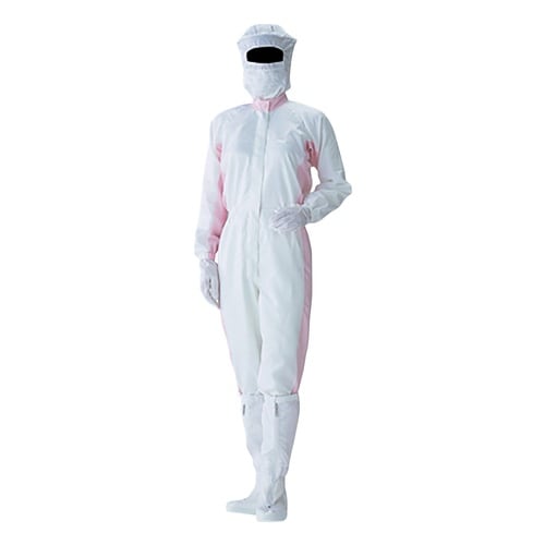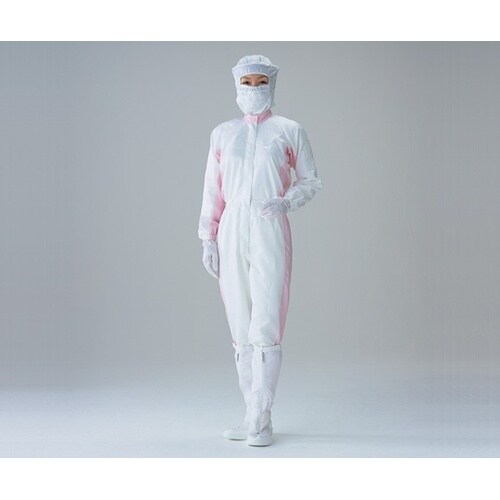 【ネームタグ貼付け導電ハンガー付】クリーンルーム用ツナギ服 白×ピンク 3L FC132B−14 3L FC132B−14 3L 1セット