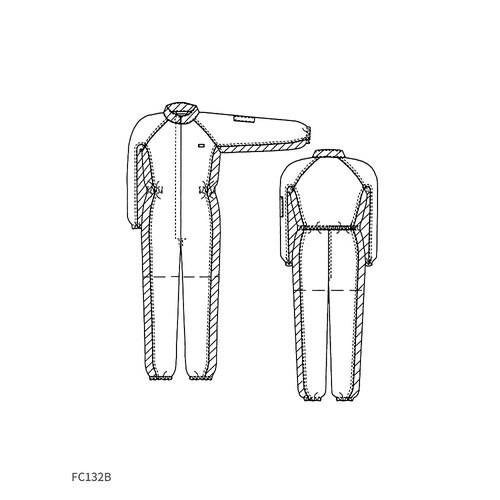 クリーンルーム用ウエア体の側面を独立分割パターンとした衣服設計(4面体構造)で、背伸び・前屈のようなダイナミックな動きにも応えます。。 |