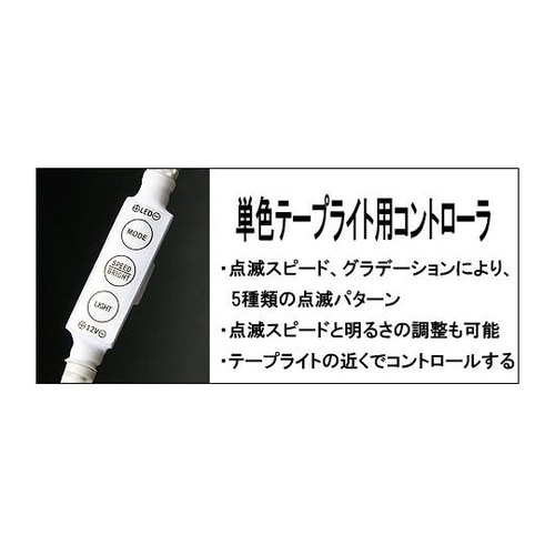 単色のテープライト用コントローラです。点滅スピードとグラデーションを調整できます。 |