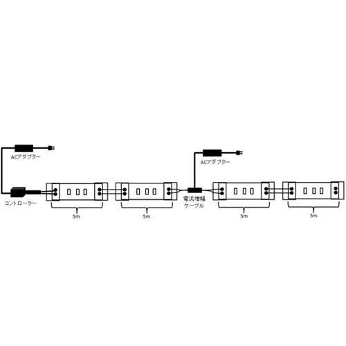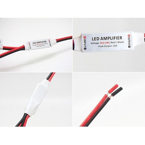 単色用の拡大器です。電流の補給とコントローラー制御信号の強化を行います。テープライトを連結して使用する場合は、10m毎に1個の拡大器と電源を追加することをお勧めします。 |