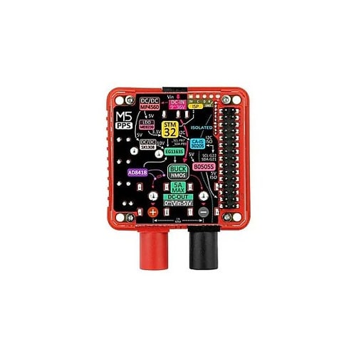M5Stack用プログラマブル電源モジュール制御用のSTM32プロセッサと高分解能電流アンプAD8418を搭載したM5Stack用で高さが13.2 mmのプログラマブル電源モジュールです。 |