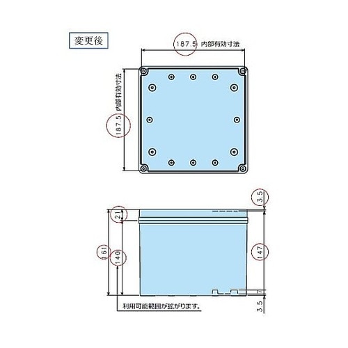 2016年7月30日出荷分より内部寸法が変更になります。(下記図面参照)外形寸法W、D の変更はありません。オプション取付ベース BMP02020P、BMP2020Z は従来通りに取付出来ます。 |