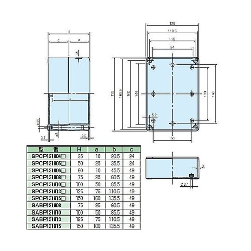 タカチ電機工業 SPCP型防水・防塵ポリカーボネートボックス SPCP131804G 1個 A09K-3738