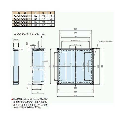 中サイズから大サイズまでの電気・電子機器用ボックスです。オプションのエクステンションフレームを利用することによりHが55mm(1段)高くなります。 |