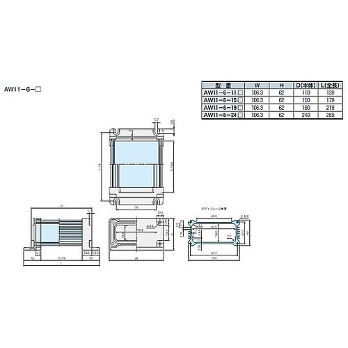 タカチ電機工業 AW型フランジ足付防水・防塵アルミケース(シールドタイプ)240mm AW11−6−24EBB 1個 A09K-4093