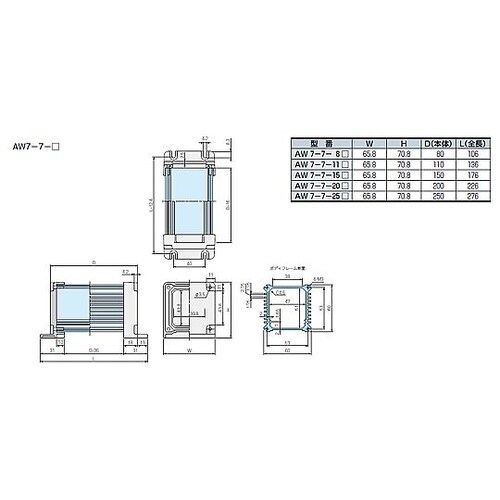 タカチ電機工業 AW型フランジ足付防水・防塵アルミケース(シールドタイプ)200mm AW7−7−20EBS 1個 A09K-4121